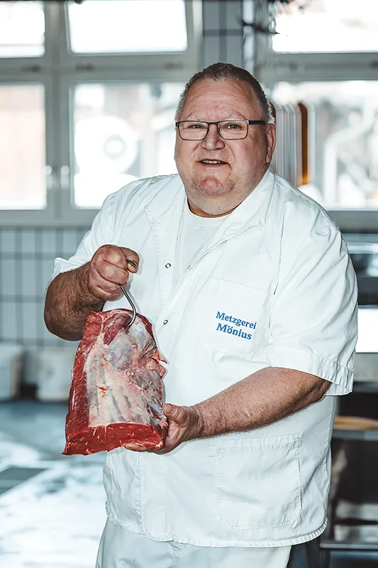 Seniorchef Sebastian Mönius, Metzgermeister mit jahrzehntelanger Erfahrung, hat den Betrieb erfolgreich an seinen Sohn Matthias Mönius übergeben. Matthias ist ebenfalls Metzgermeister und zusätzlich ausgebildeter Fleischsommelier – ein Spezialist für Fleischqualität, Reifung und Genusskultur. Mit dieser Expertise führt er die Metzgerei nun in der 5. Generation weiter und verbindet traditionelle Handwerkskunst mit moderner Fachkompetenz.